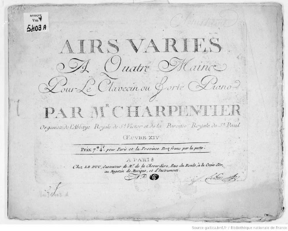 Alternative. Title Airs variés à quatre mains pour le clavecin ou forte piano
