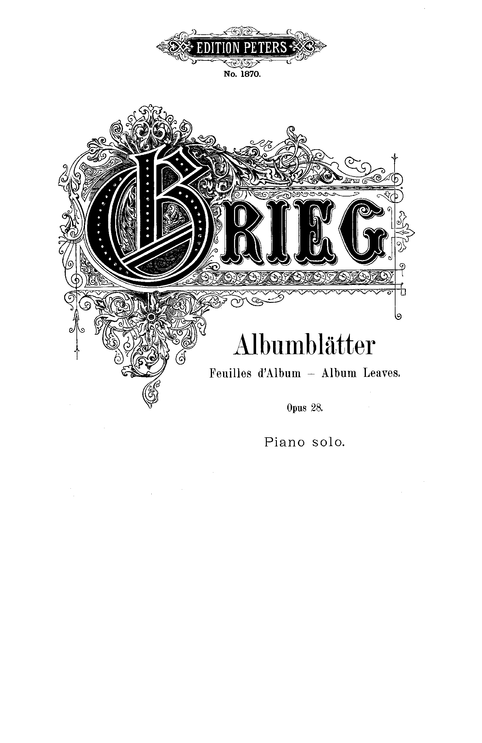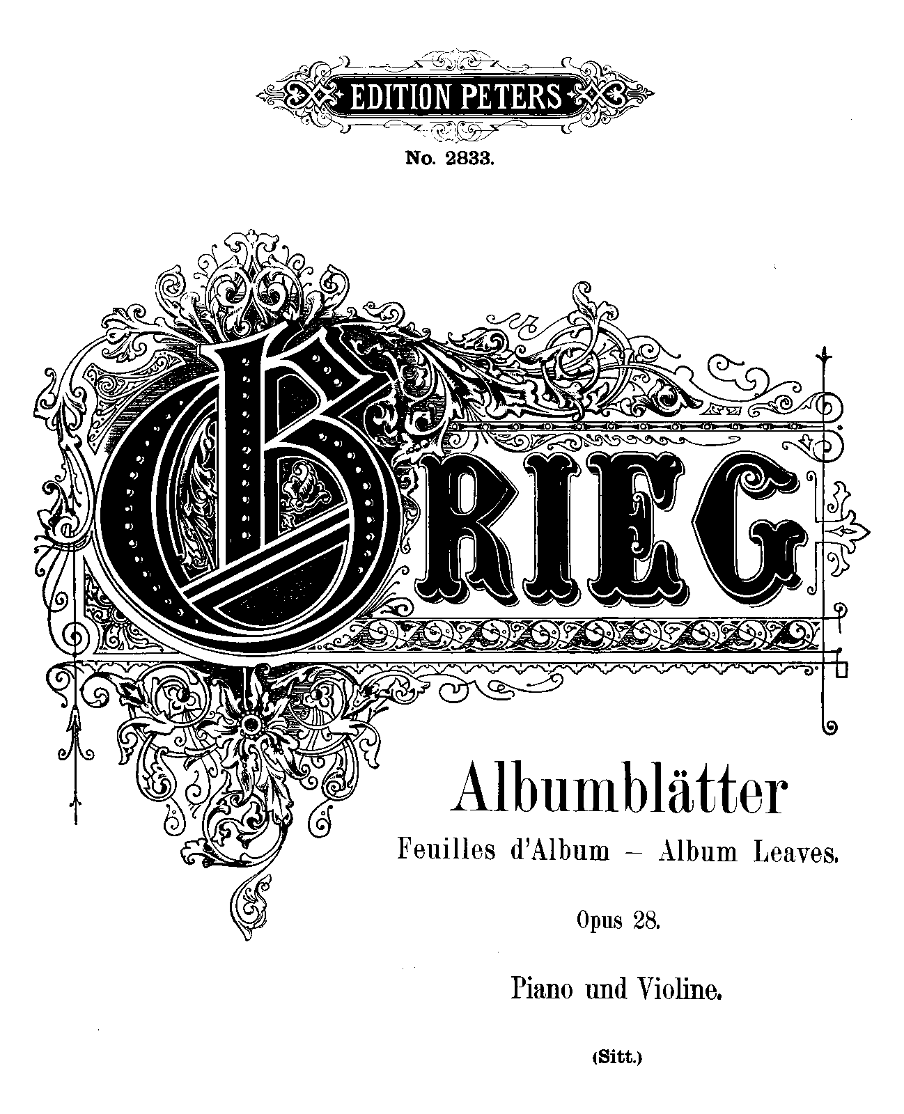 Publisher. Info. Leipzig: Edition Peters, No. 2833, n.d.[1896]. Plate 8315.