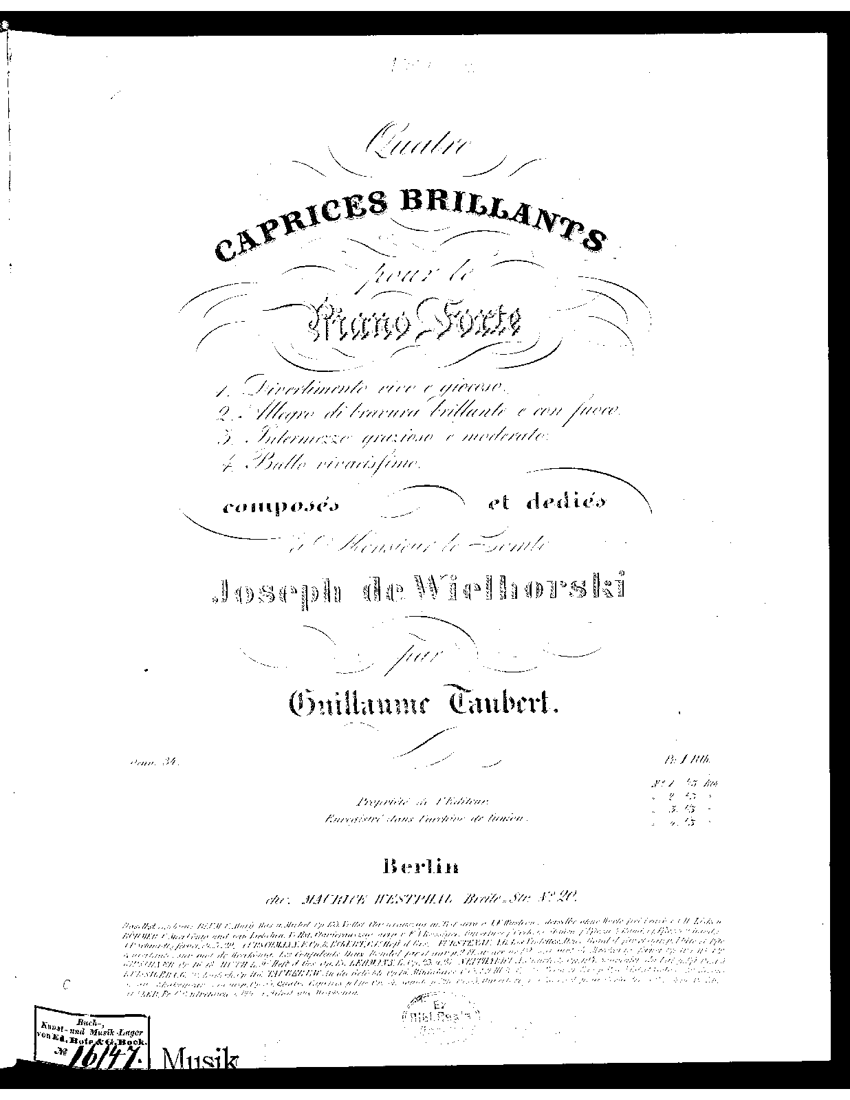 | Dedication | à Monsieur le Comte Joseph de Wielhorski |