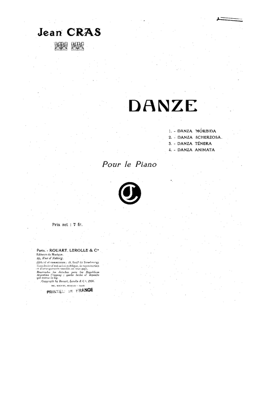 | First Publication. | 1920 – Paris: Rouart, Lerolle & Cie. |