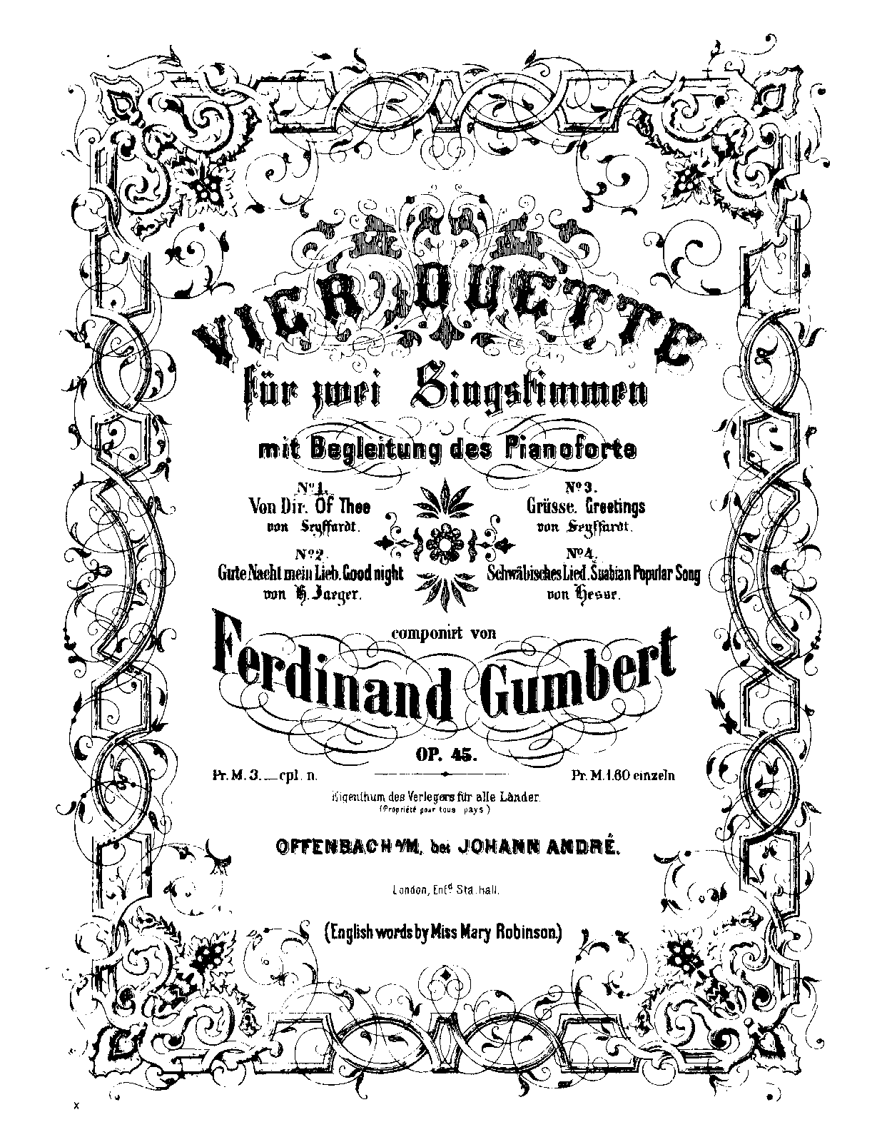 Offenbach: Johann André, n.d.[1852]. Plate 7212.