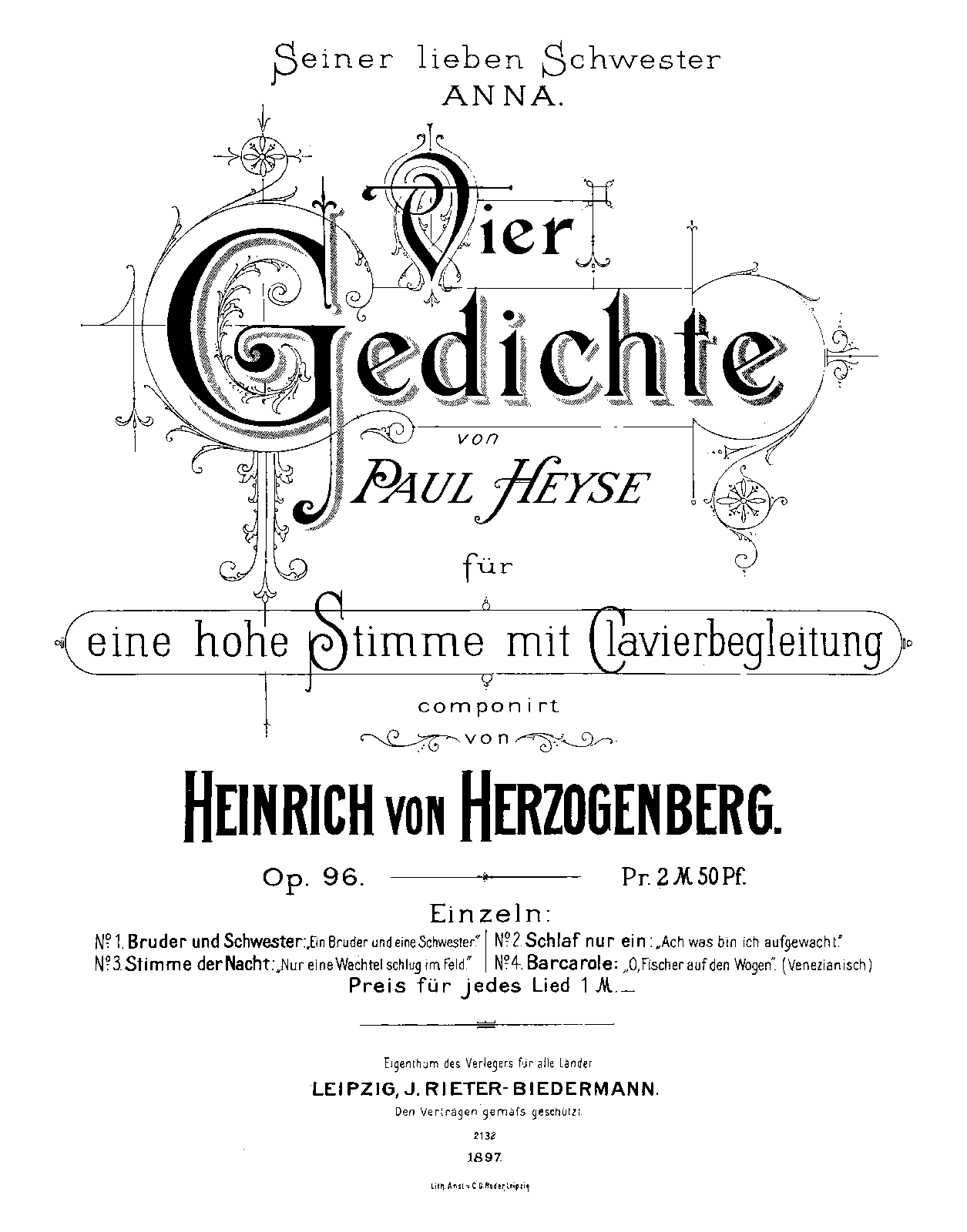 | Alternative. Title | Vier Gedichte von Paul Heyse für eine hohe Stimme mit Clavierbegleitung |