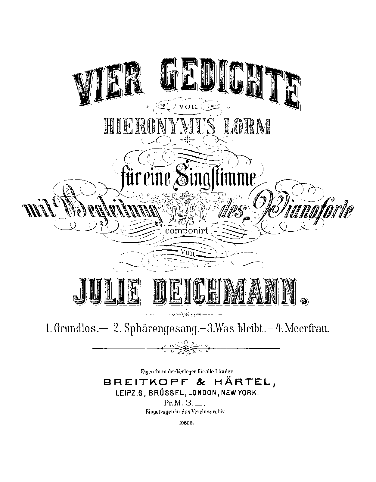 | Alternative. Title | Vier Gedichte von Hieronymus Lorm für eine Singstimme mit Begleitung des Pianoforte |