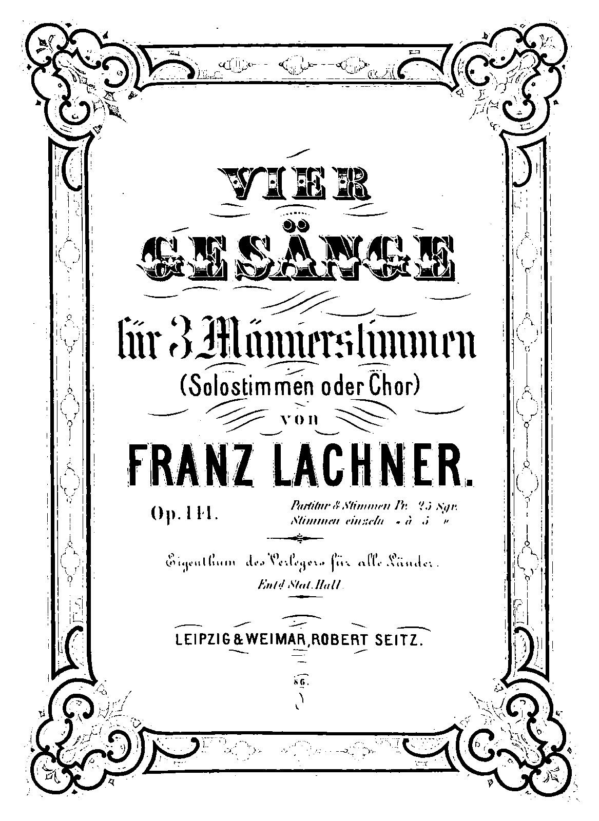 | Alternative. Title | Vier Gesänge für 3 Männerstimmen (Solostimmen oder Chor) |