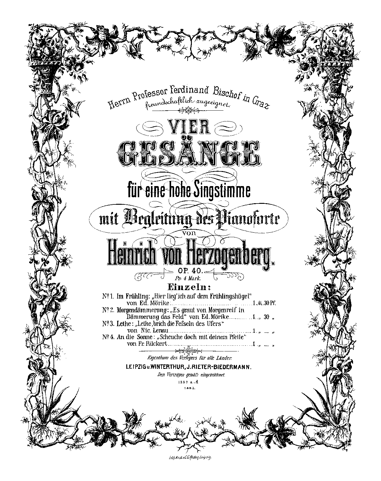 | First Publication | 1883 – Leipzig: J. Rieter-Biedermann |