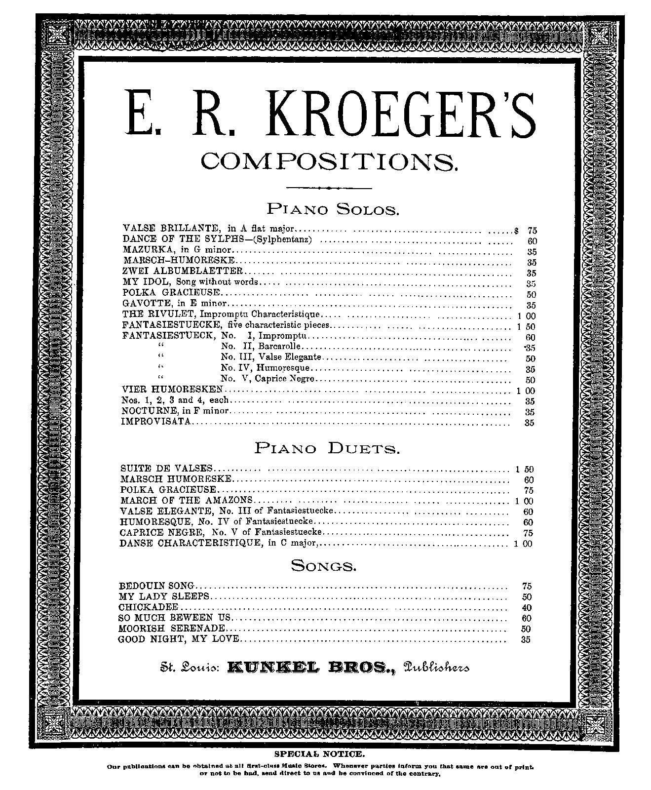 | First Publication. | 1885 – St. Louis: Kunkel Brothers |