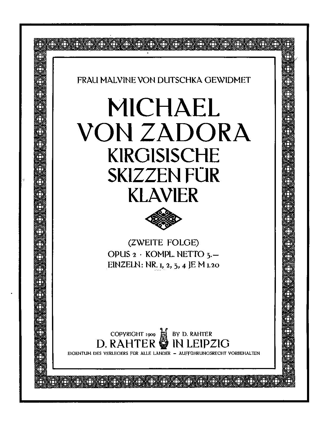 | Dedication | Frau Malvine von Dutschka gewidmet |