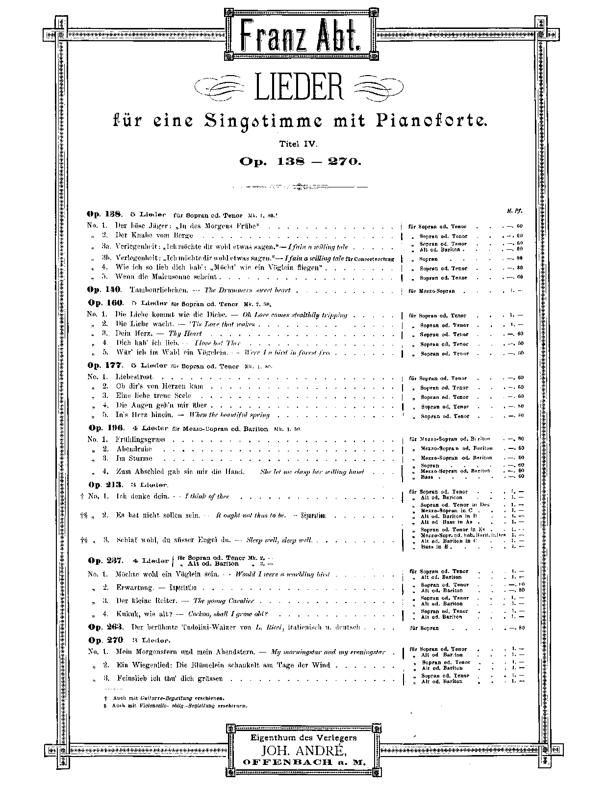| Genre Categories | Lieder; Songs; For voice, piano; |
