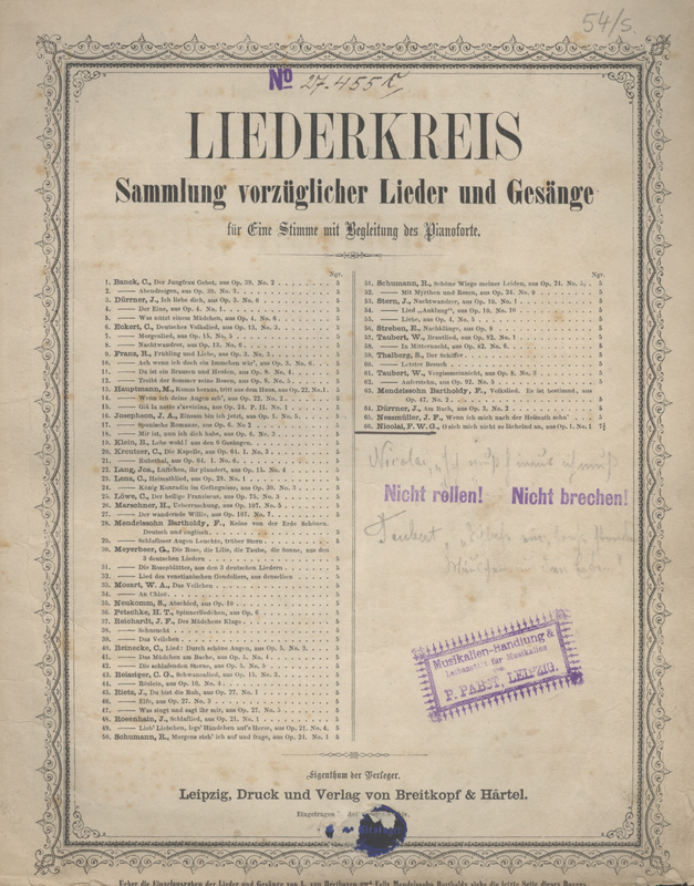 | Genre Categories | Lieder; Songs; For voice, piano; |