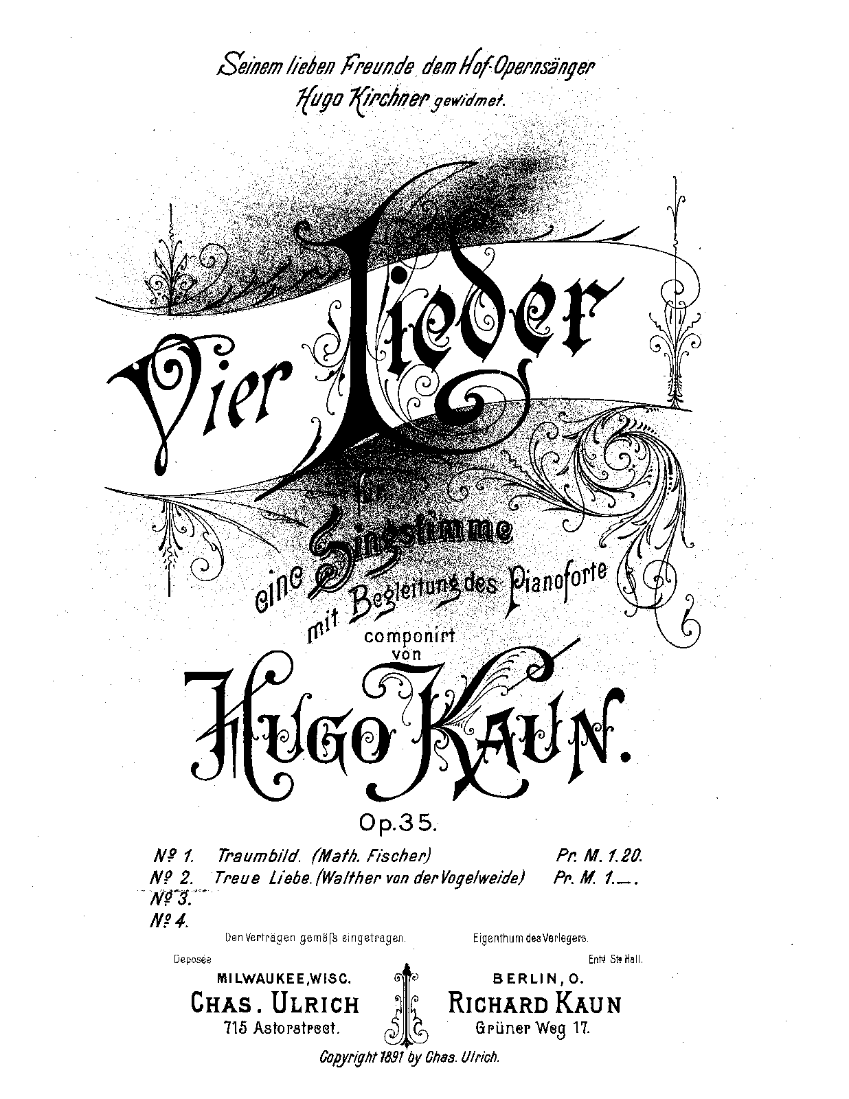 | Dedication | Seinem lieben Freunde dem Hof-Opernsänger Hugo Kirchner gewidmet |