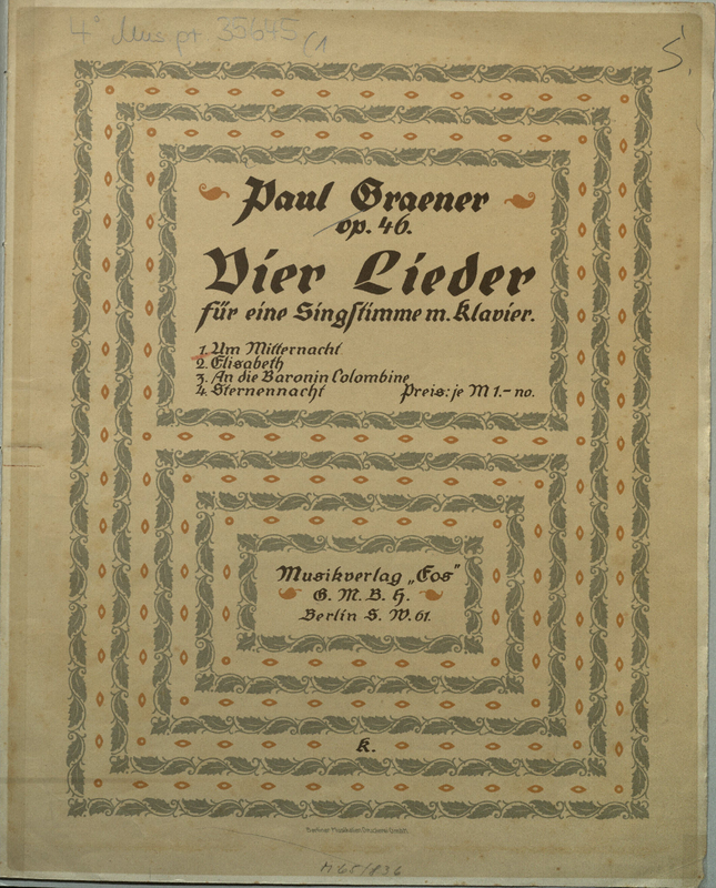 | First Publication | 1915 – Berlin: Musiverlag “Eos” G.M.B.H. |