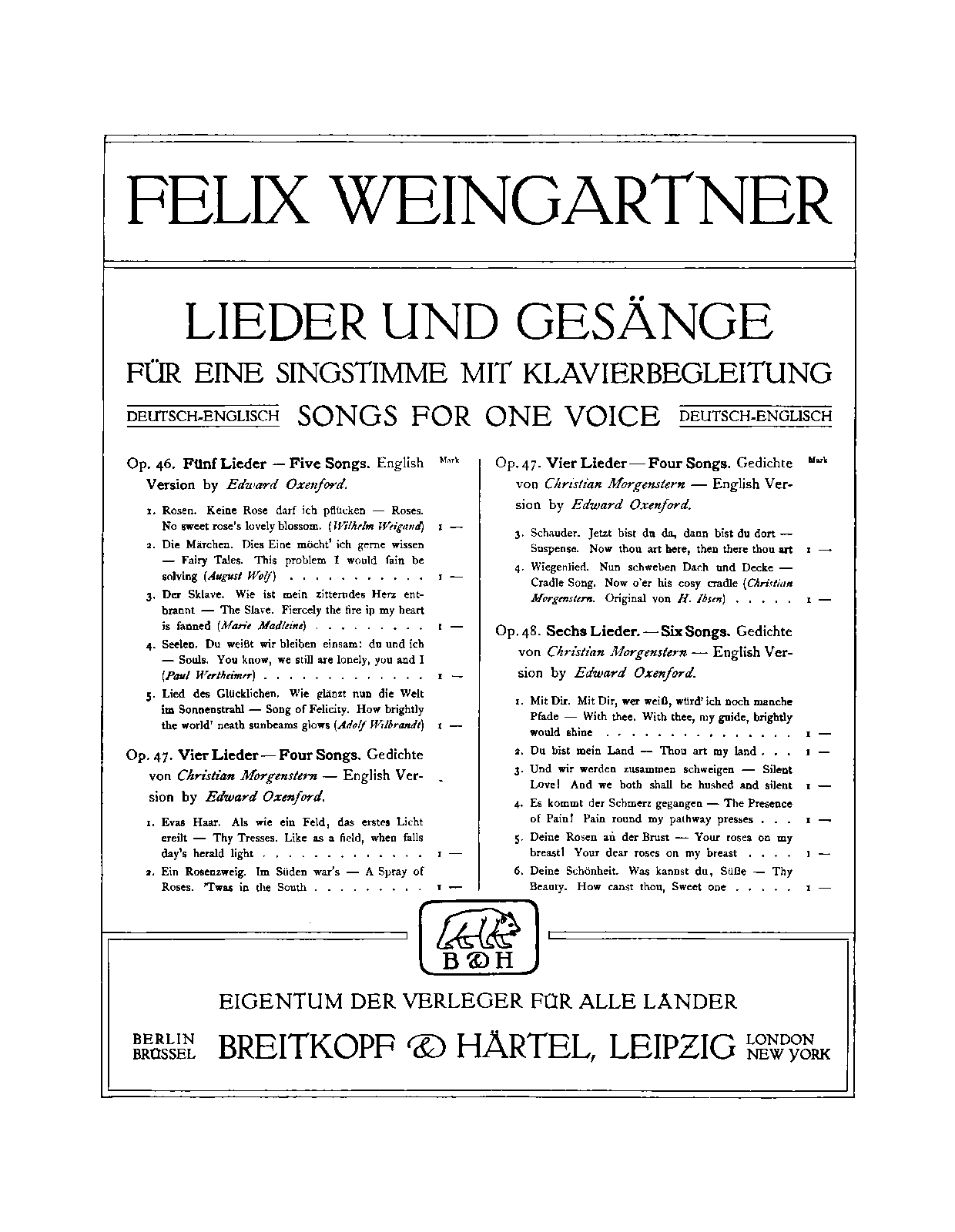 | First Publication | 1910 – Leipzig: Breitkopf und Härtel |