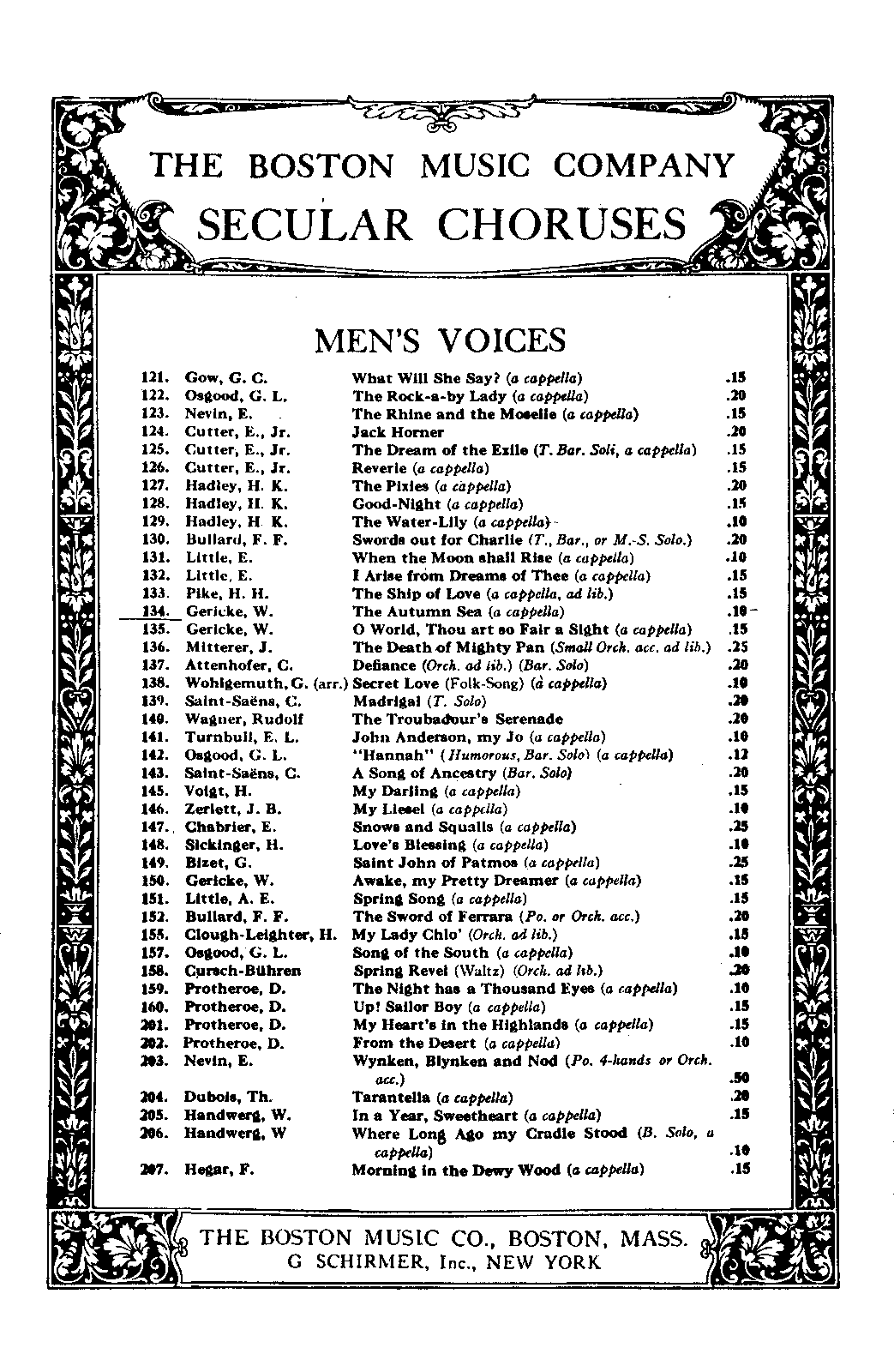 | Genre Categories | Secular choruses; Choruses; For male chorus; |
