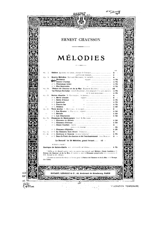 | Genre Categories | Melodies; Songs; For voice, piano; |
