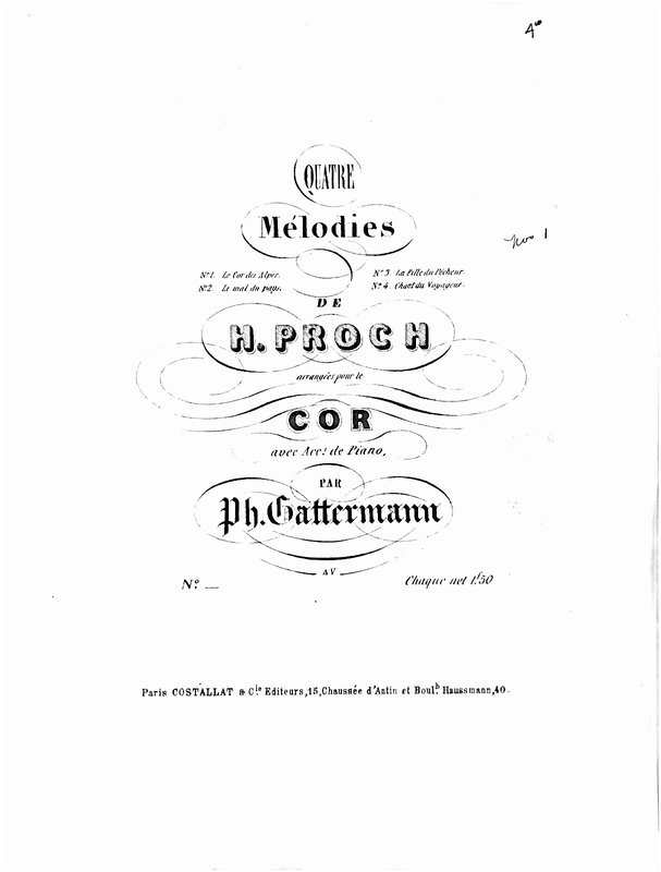 | Alternative. Title | Quatre Mélodies de H. Proch arrangées pour le cor avec accompagnement de piano |