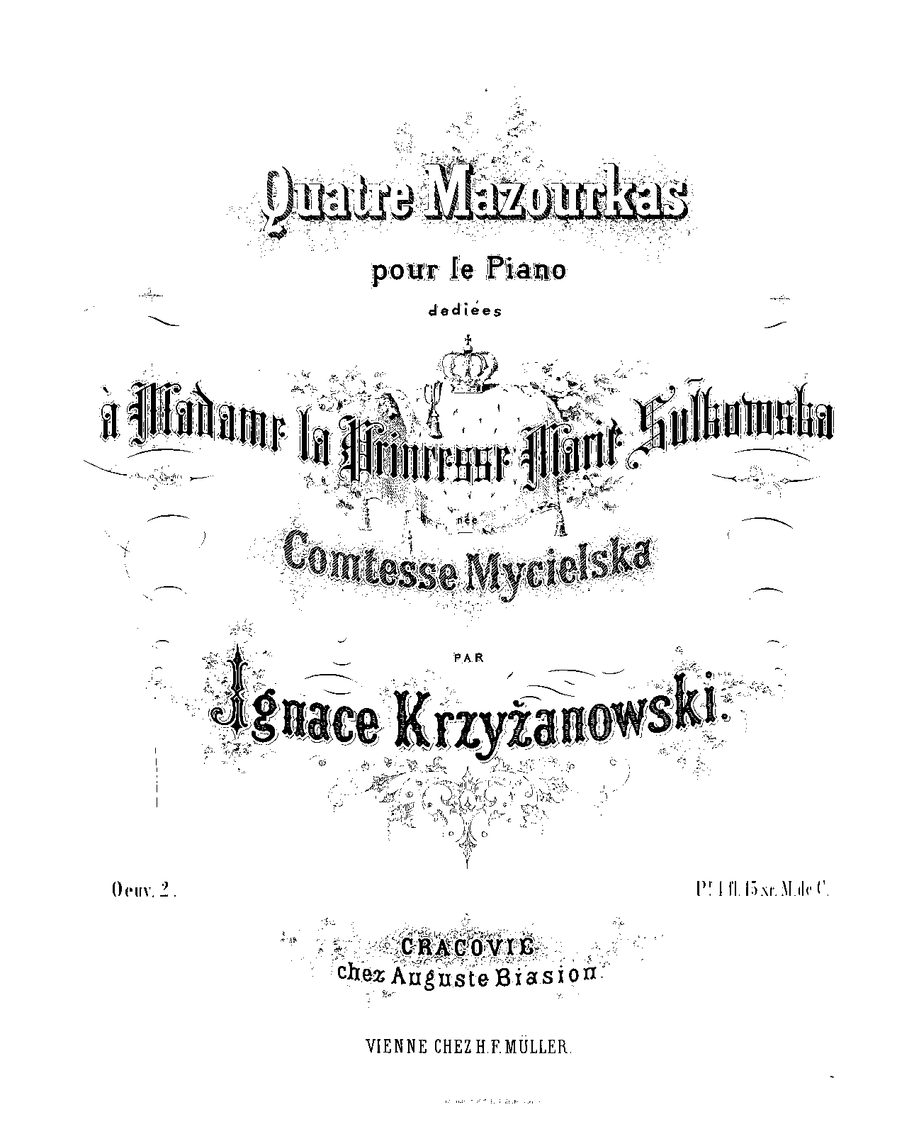 | Dedication | à Madame la Princesse Marie Sułkowska Comtesse Mycielska |