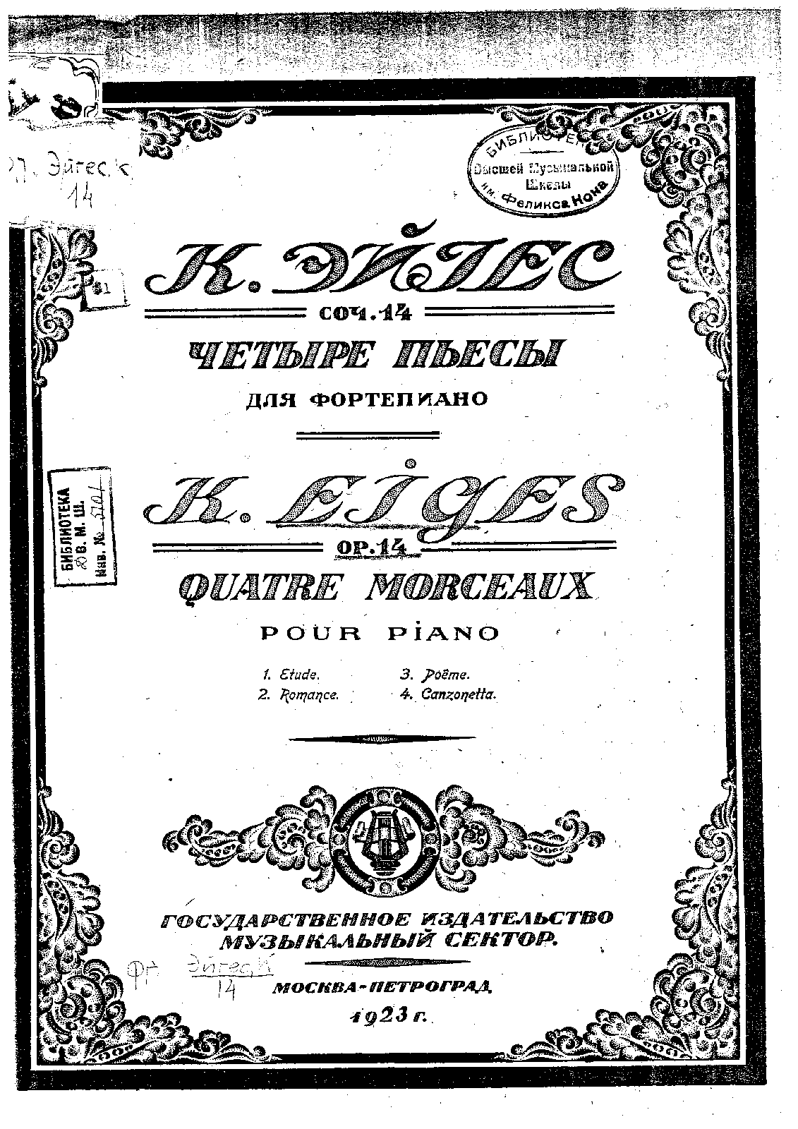 | First Publication. | 1923 - Gosudarstvennnoe Izdatel'stvo Muzykal'nyi Sektor |