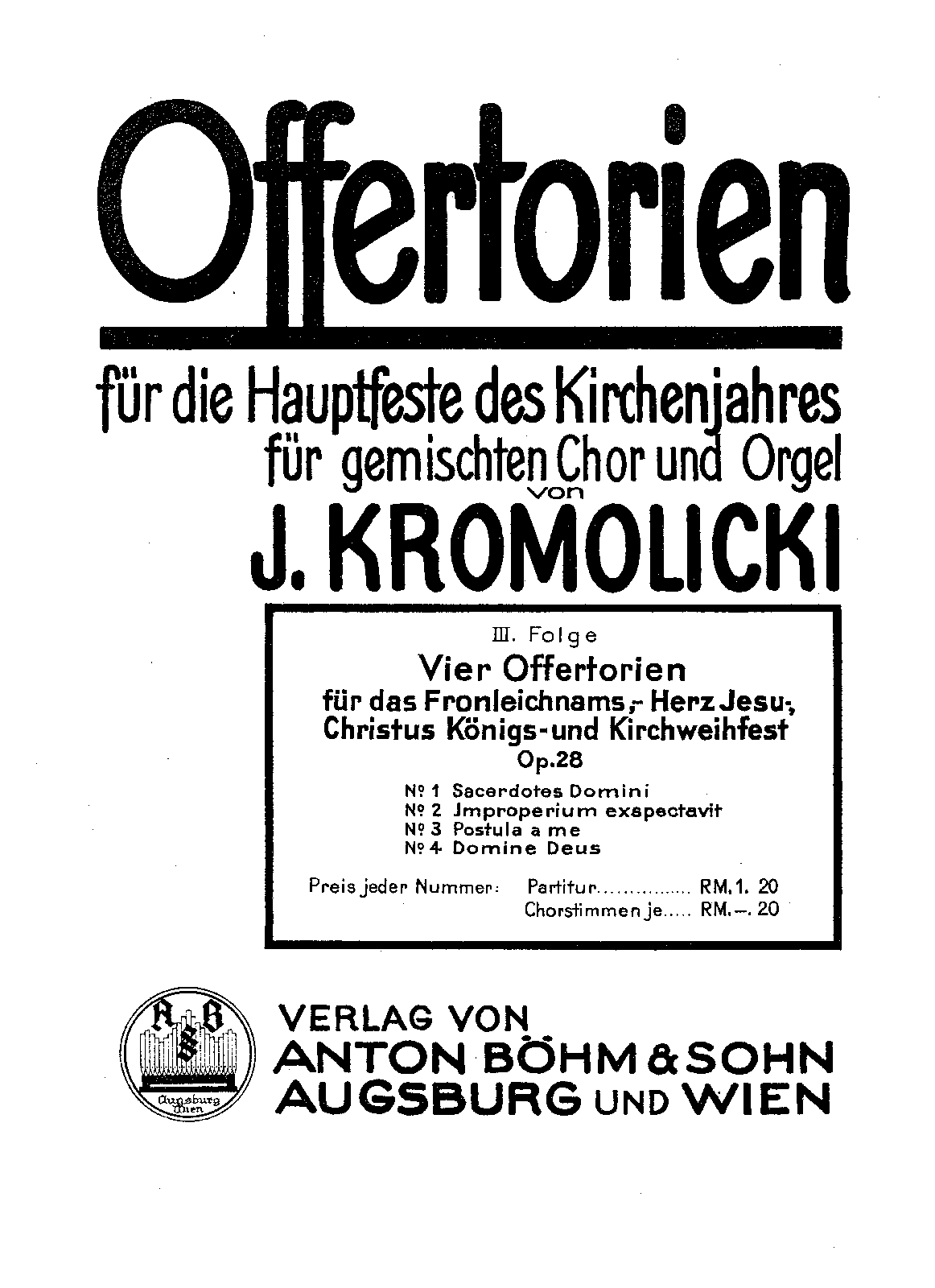 | Alternative. Title | 4 Offertorien für das Fronleichnams-, Herz-Jesu-, Christus-Königs- und Kirchweihfest |
