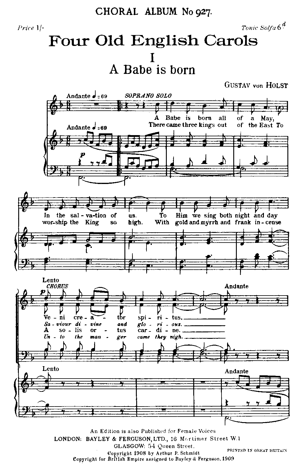 | Genre Categories | Carols; Religious works; For mixed chorus; |