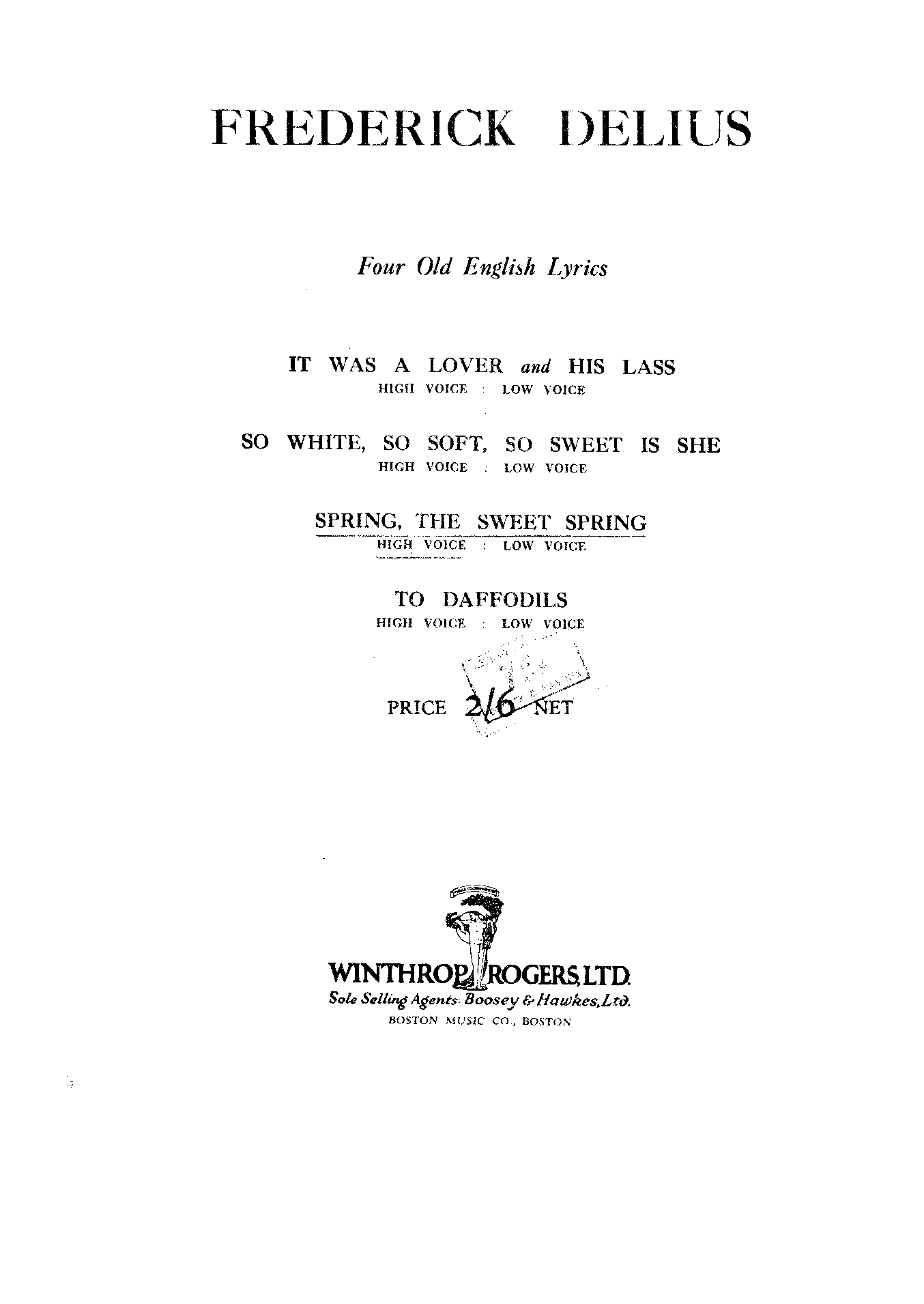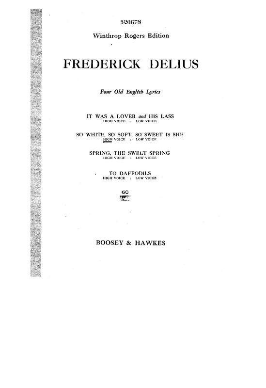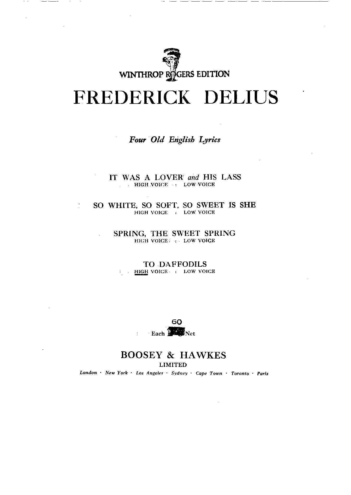 | Genre Categories | Songs; For voice, piano; For voices with keyboard; |