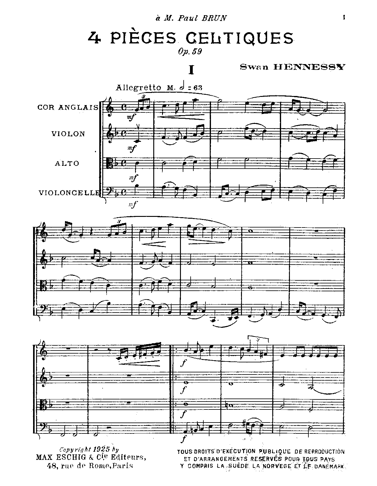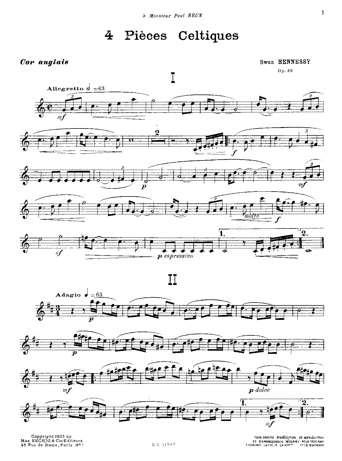 | Genre Categories | Pieces; For English horn, violin, viola, cello; Scores featuring the English horn; |