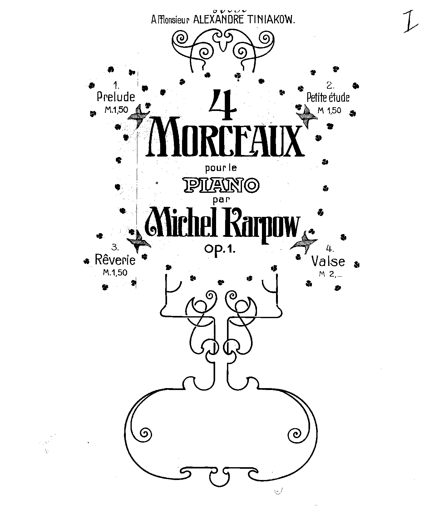Dedication differs for Prélude with the Ditson edition showing Alexandre Tiniakow while the Zimmermann indicates Constantin Tchernow.