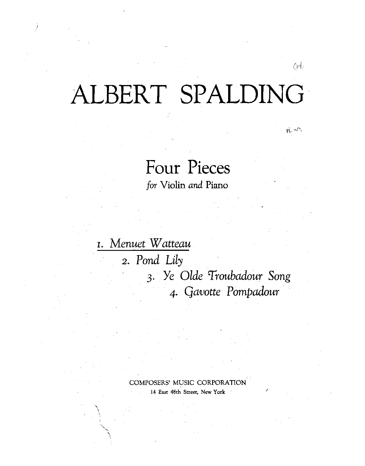 | Genre Categories | Pieces; For violin, piano; Scores featuring the violin; |