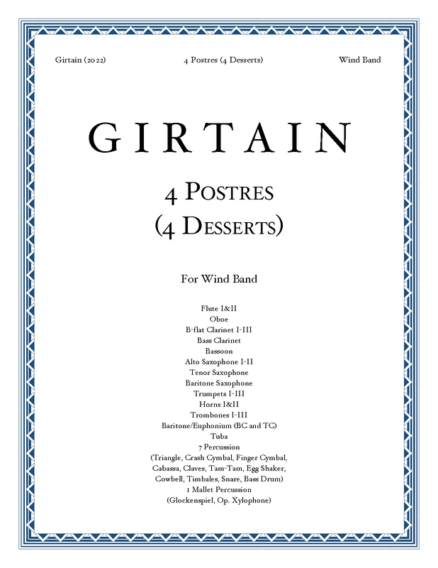 | Work Title | 4 Postres (4 Desserts) for Two Violins |