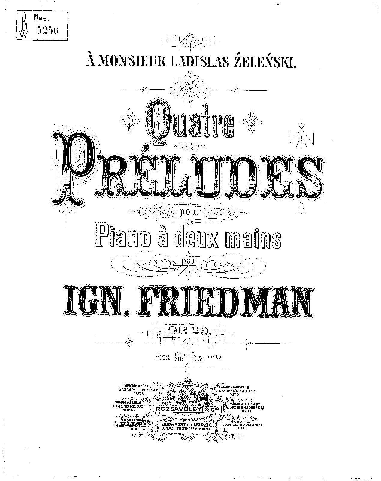 | Alternative. Title | Quatre préludes pour piano à deux mains, op. 29 par Ignace Friedman. |