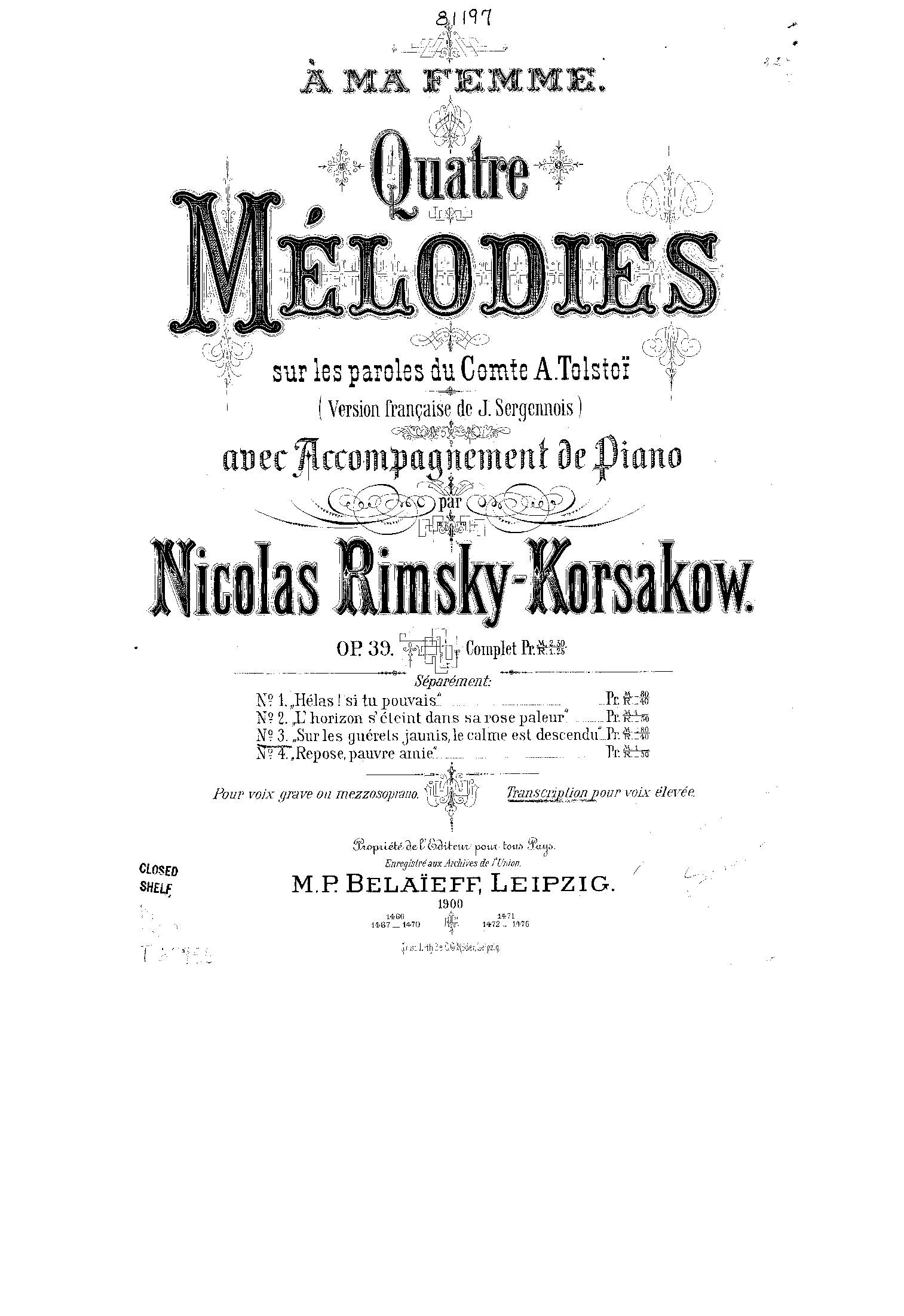 - Transposed for high voice. Plates 1471 (set), 1472 to 1475 (separately).