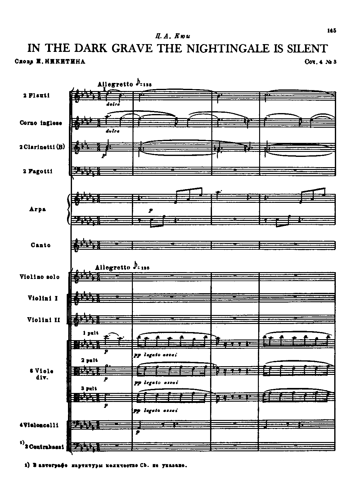 1866 – St. Petersburg: V. Bessel 1922 – Moscow. Arrangements for voice and orchestra of Nos.3 and 4.