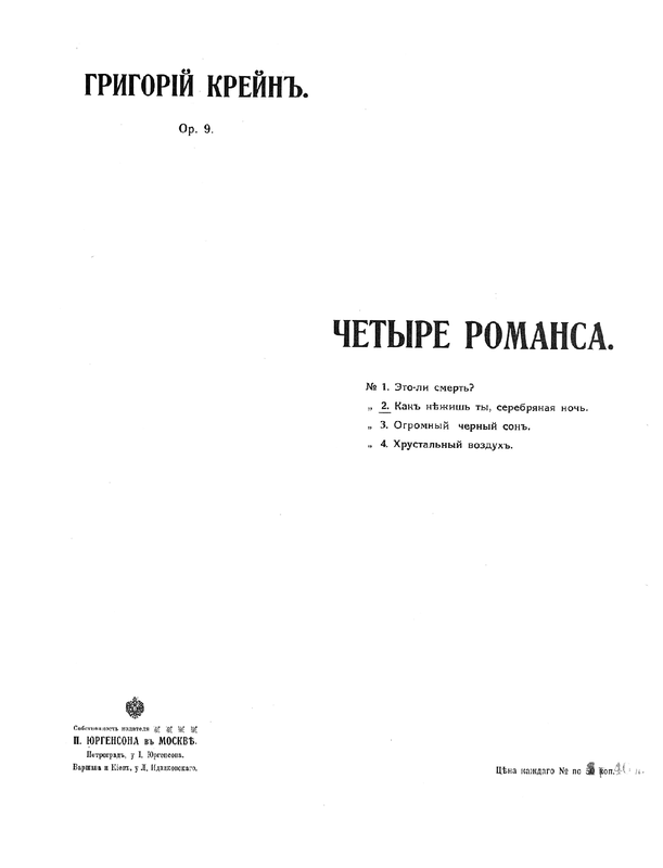 | First Publication. | 1916 - Moscow: P. Jurgenson |
