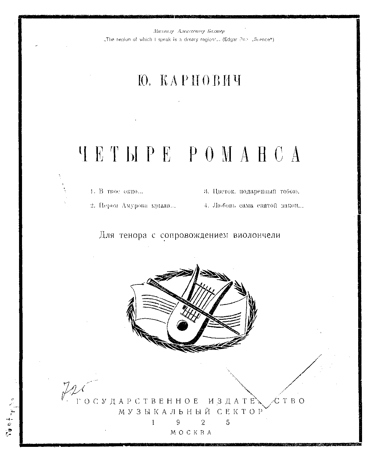 | Genre Categories | Romances; For voice, cello; For voices with solo instruments; |