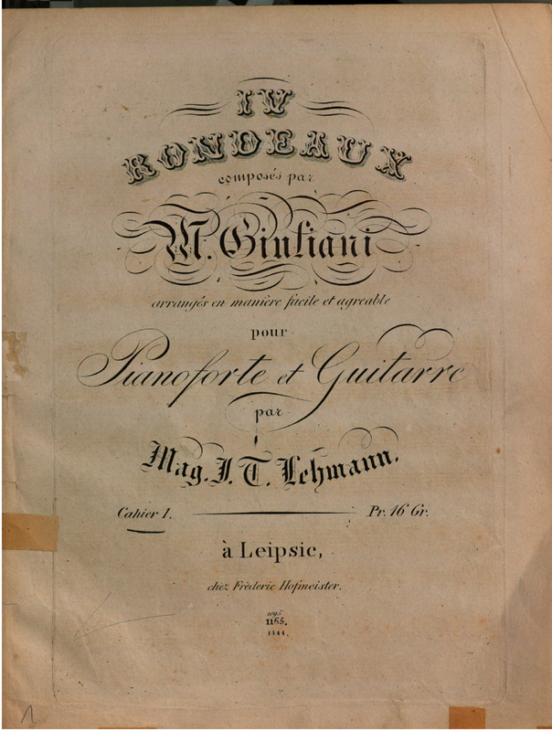 4 Rondeaux composés par M. Giuliani arrangés en manière facile et agreable pour Pianoforte et Guitarre
