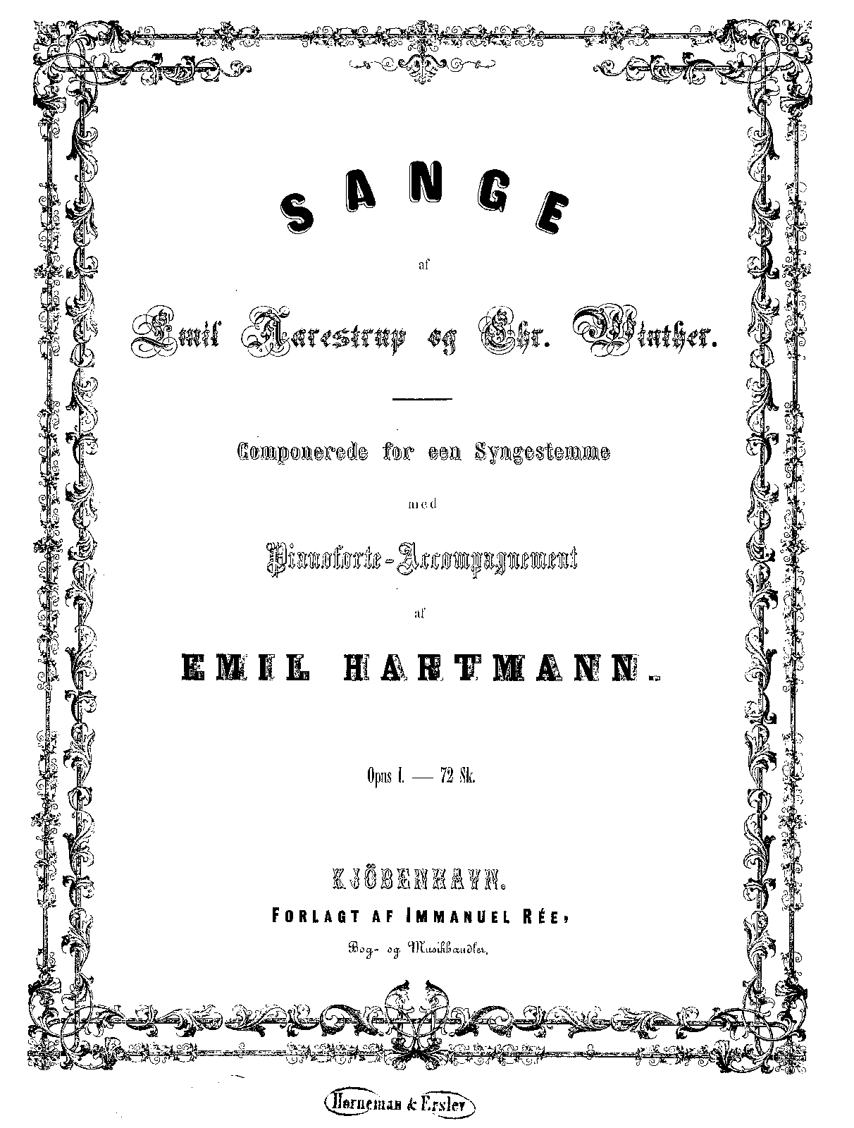| Work Title | Sange af Emil Aarestrup og Chr. Winther for een Syngestemme med Pianoforte |