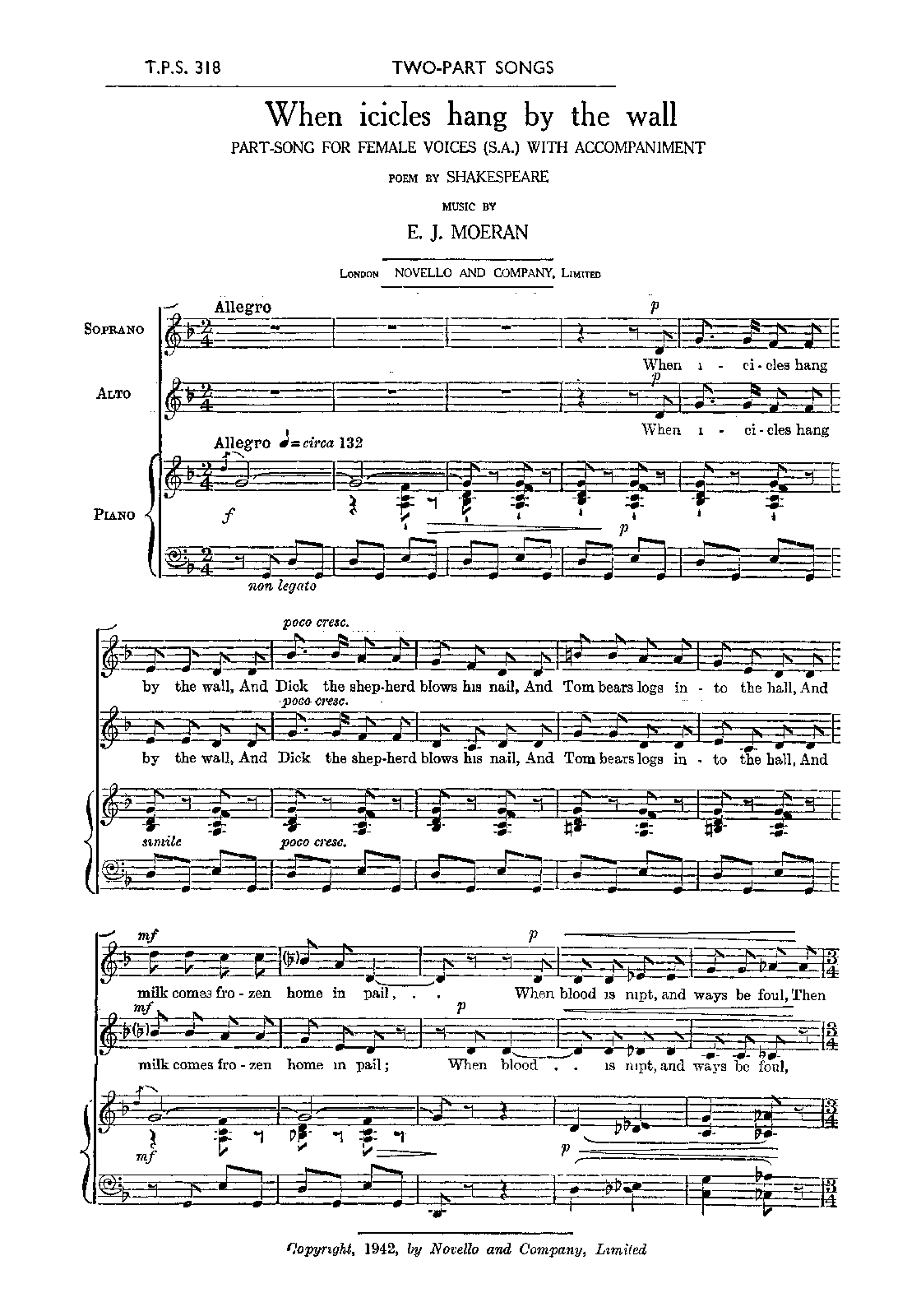 | First Publication. | 1940 – London: Novello & Co., Ltd. |