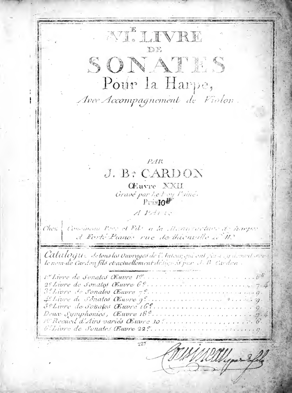 | Alternative. Title | VIe livre de sonates pour la harpe avec accompagnement de violon |