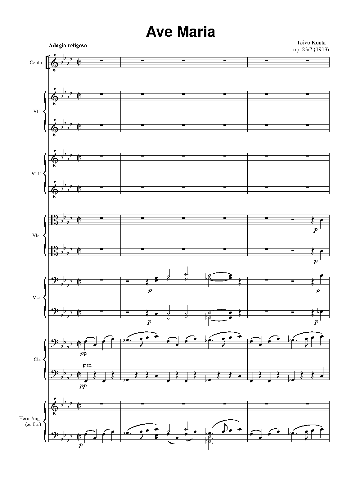 | Librettist | 1. Veikko Antero Koskenniemi (1885-1962) 2. Salutatis Angelorum, text adapted from Luke 1:28 & 42 3. Eino Leino (1878-1926) 4. Lauri Pohjanpää (1889-1962) |