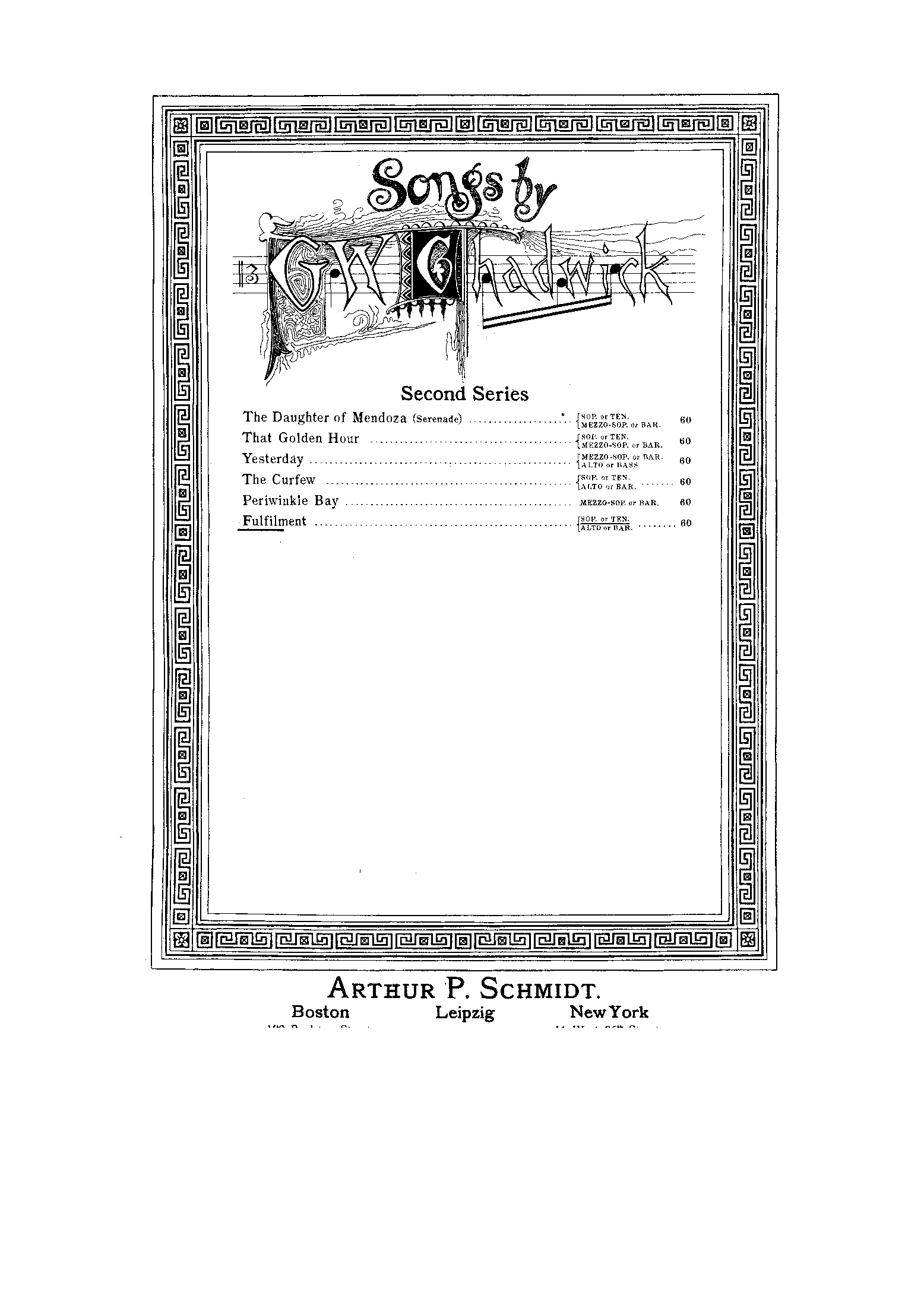| Genre Categories | Songs; For voice, piano; For voices with keyboard; |