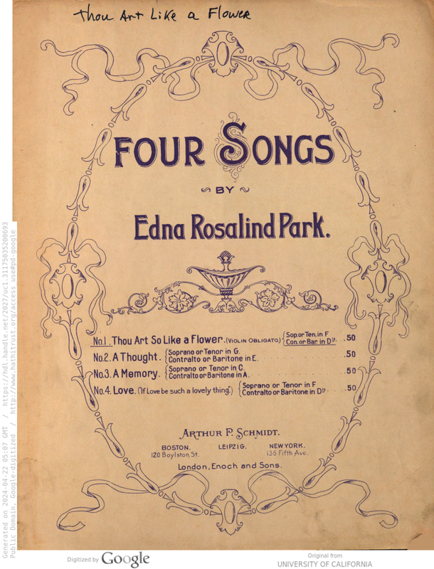 | Genre Categories | Songs; For voice, piano; For voices with keyboard; |