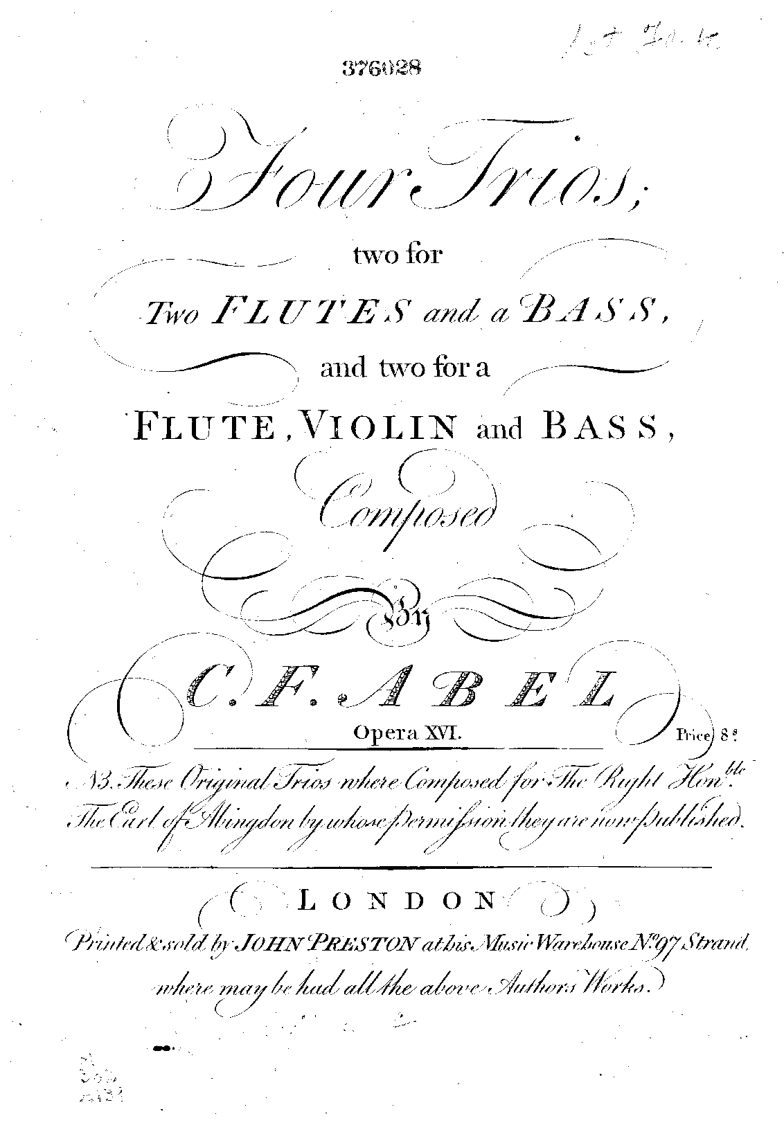 Four trios, two for two flutes and a bass, and two for a flute, violin and bass, opera XVI