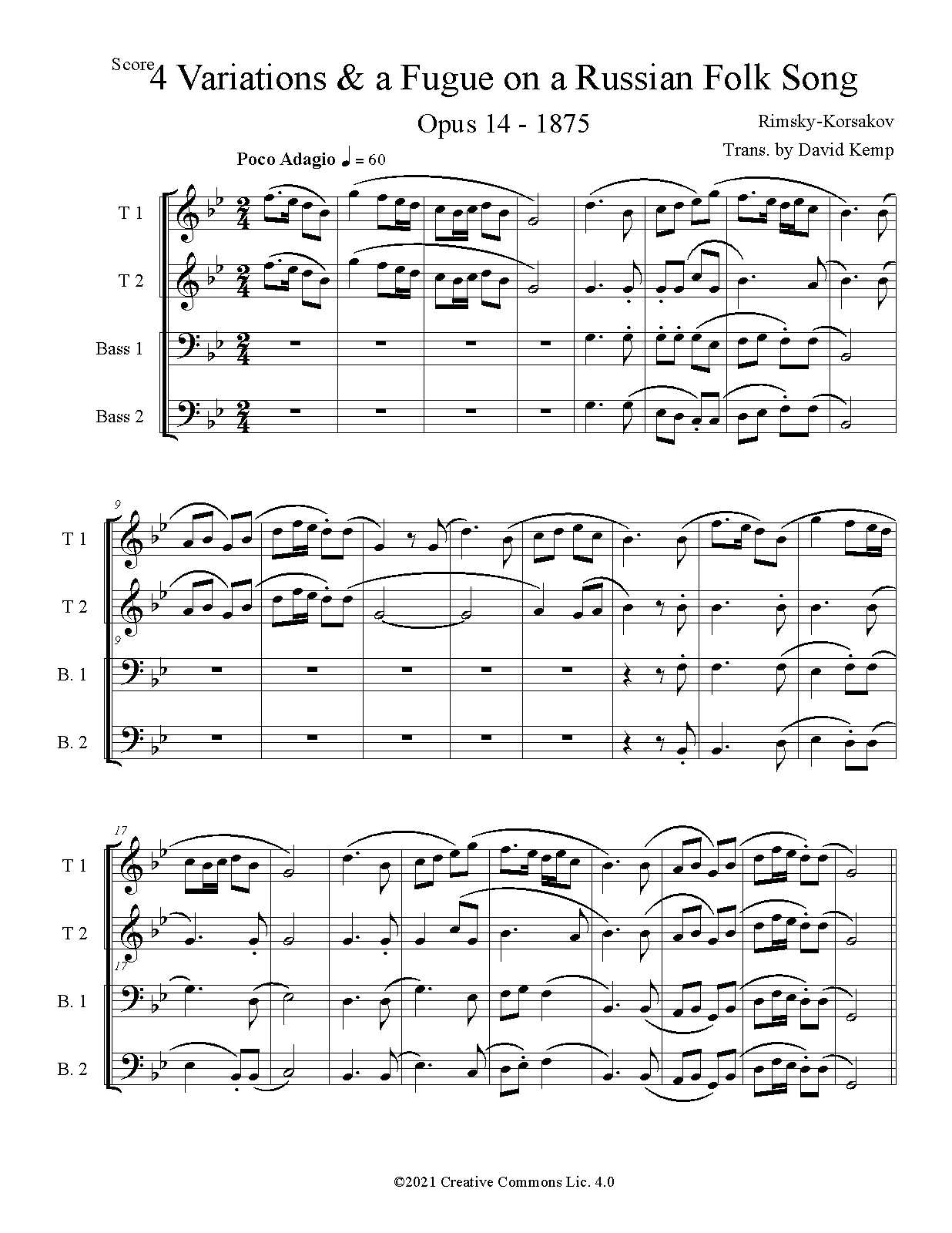 4 Variations and Fughetta (on the theme of the Russian folksong 'I am Tired of the Nights')
