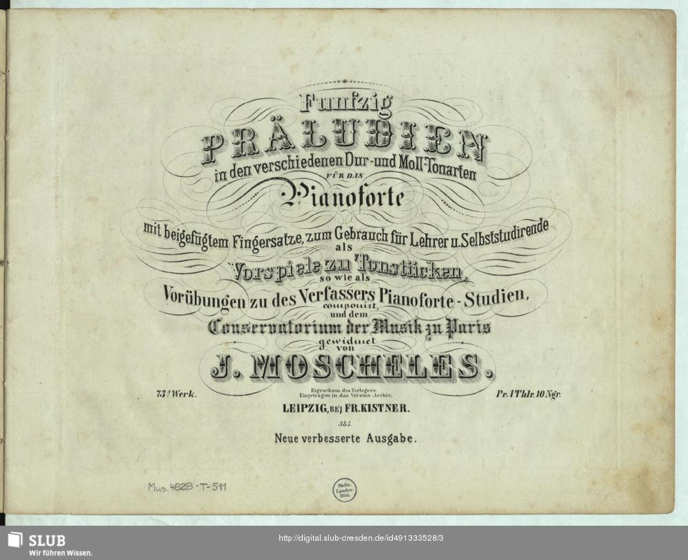 Fünfzig Präludien in den verschiedenen Dur- und Molltonarten für das Pianoforte mit Fingersatz, als Vorspiele zu Tonstücken, so wie als Vorübungen zu des Verfassers Pianoforte-Studien.