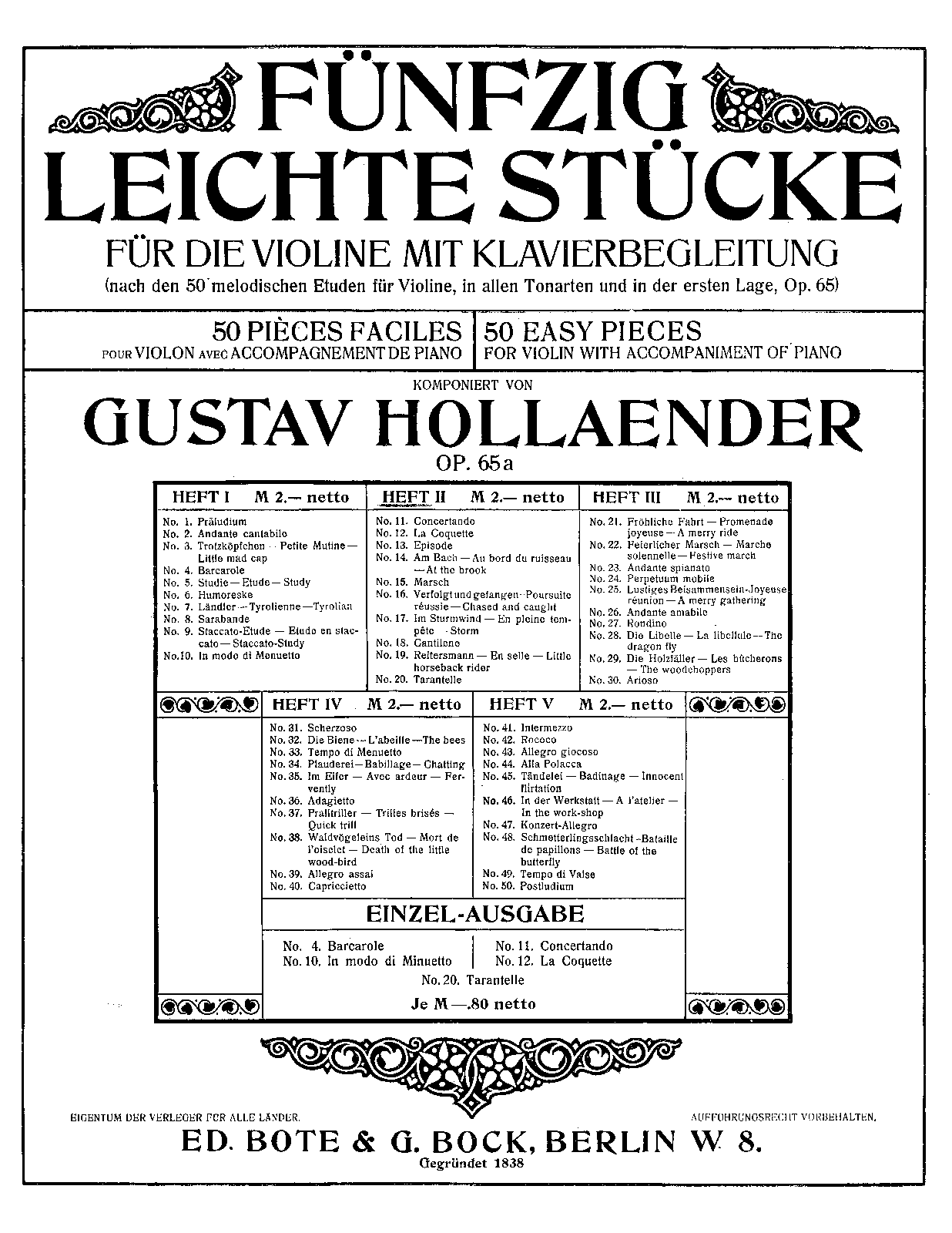 Berlin: Bote & Bock, 1911. Plate B. & B. 17643 - 47.