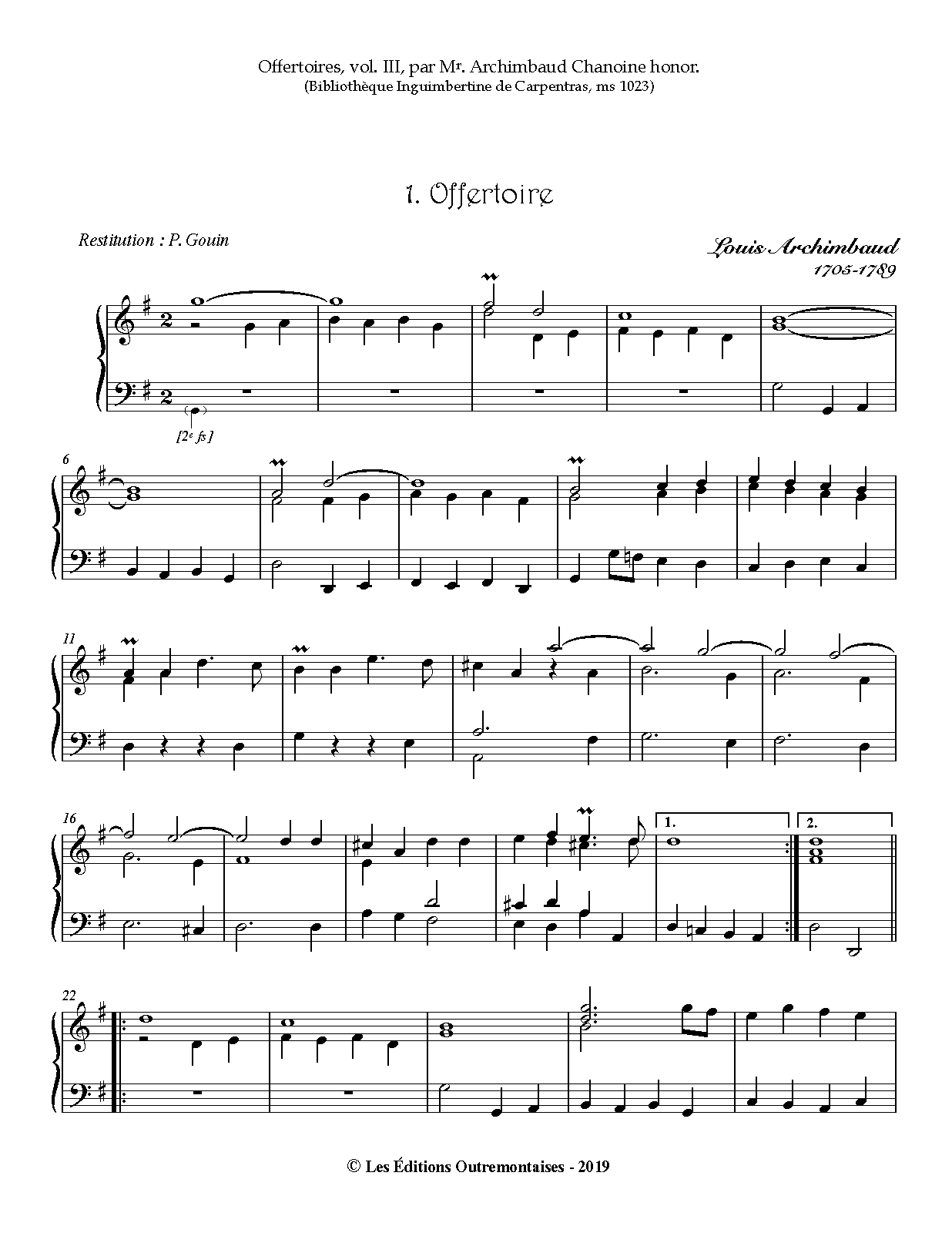 From the so-called «Livre d'orgue de Carpentras», some 400 short organ pieces by Chanoine Louis Archimbaud, Bibliothèque Inguimbertine de Carpentras (ms 1023).