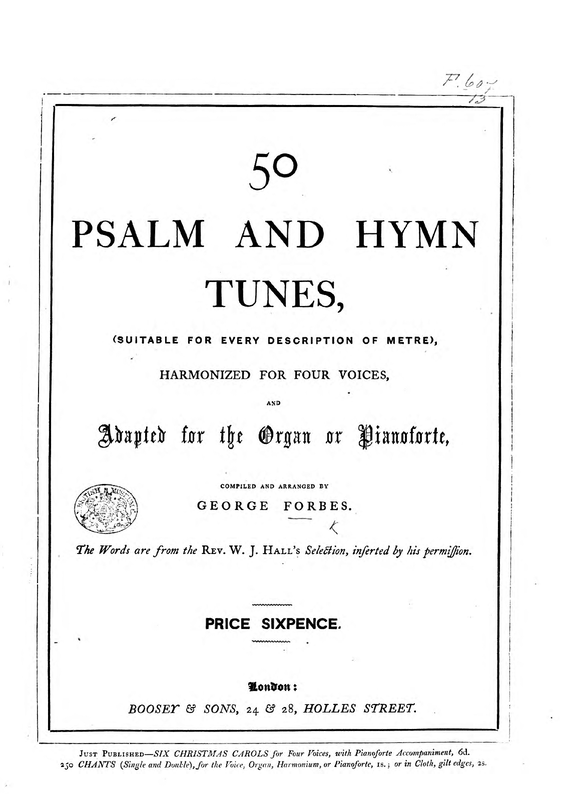 | Alternative. Title | 50 Psalm and Hymn Tunes, (suitable for every description of metre), harmonized for four voices, and adapted for the organ or pianoforte |