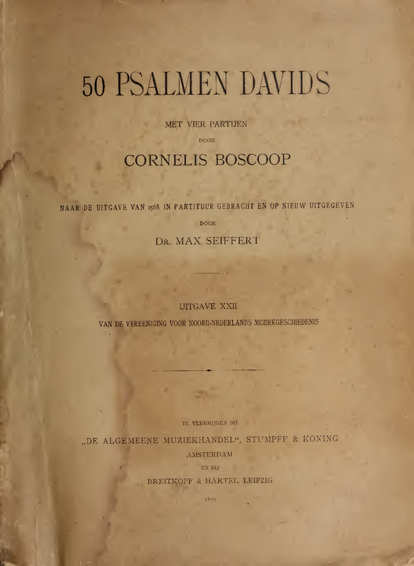 Psalmen Dauid, Vyfftich, mit vier partyen, seer suet ende lustich om singen en speelen op verscheiden instrumenten, gecomponeert by M. Cornelius Buschop 50 Psalmen Davids, met vier Partijen