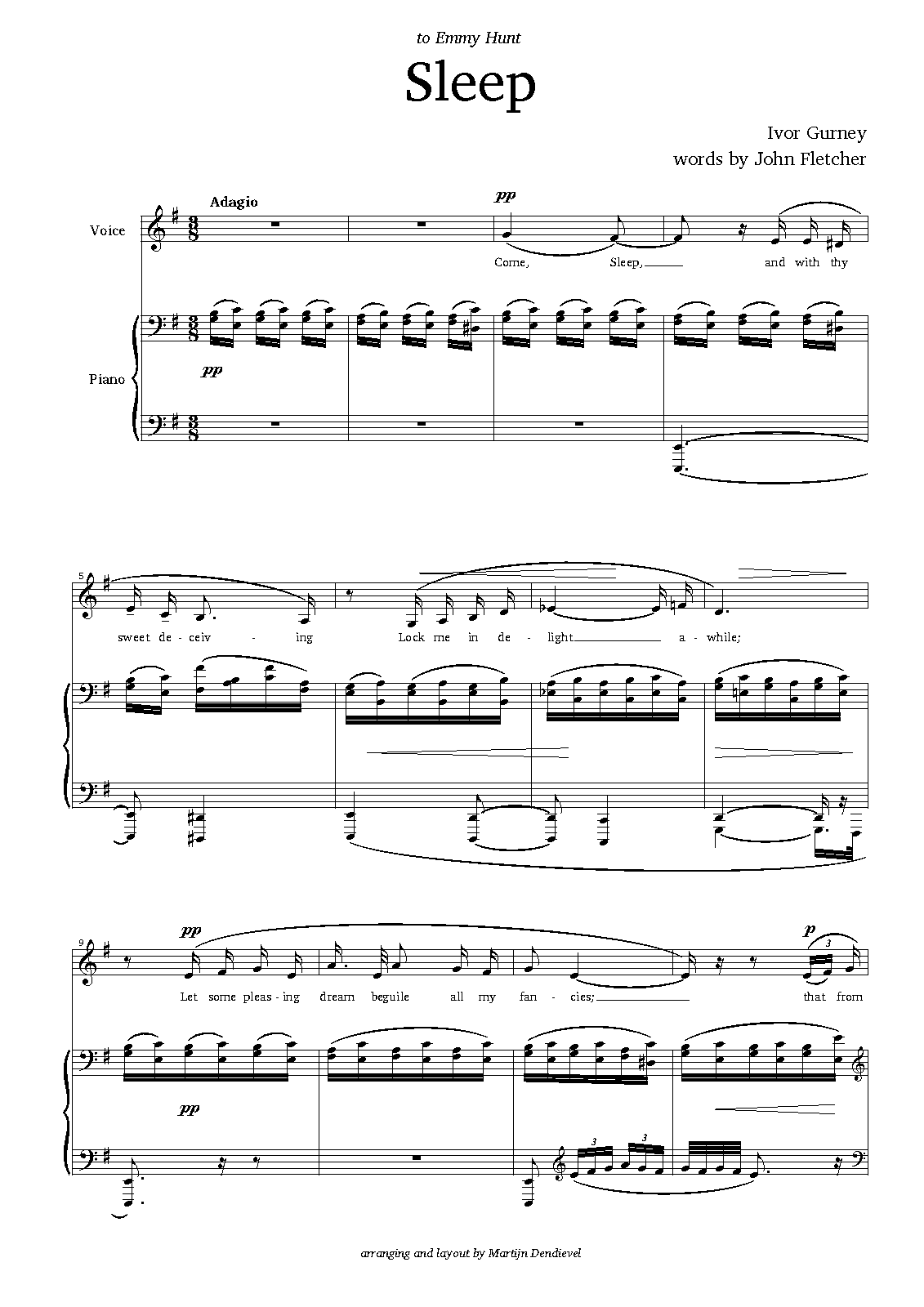 A transposition/printing error in Sleep: First page, last system, first bar, fifth note in right hand: should be one third higher (see original version).