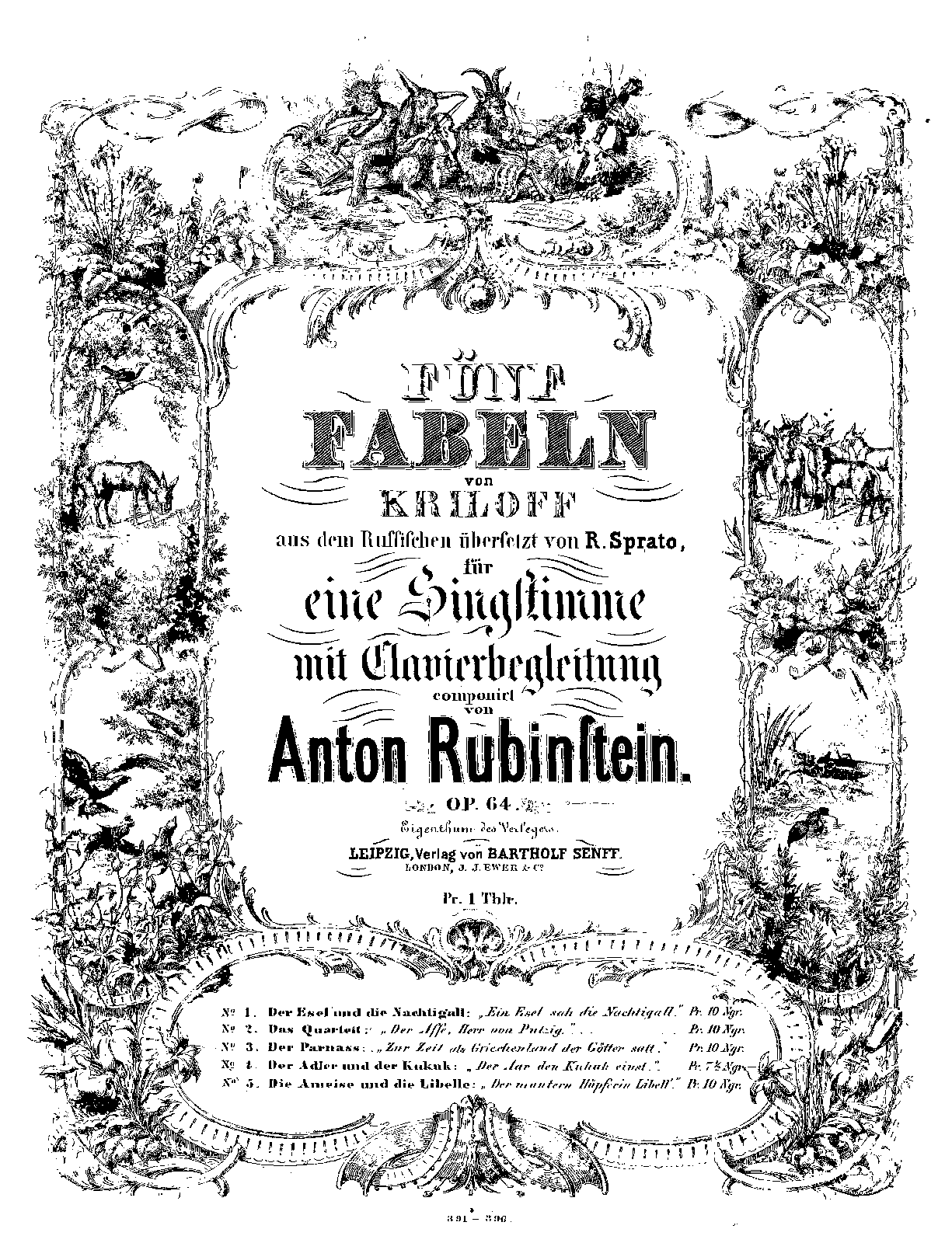 | Alternative. Title | Fünf Fabeln von Kriloff für eine Singstimme mit mit Clavierbegleitung |