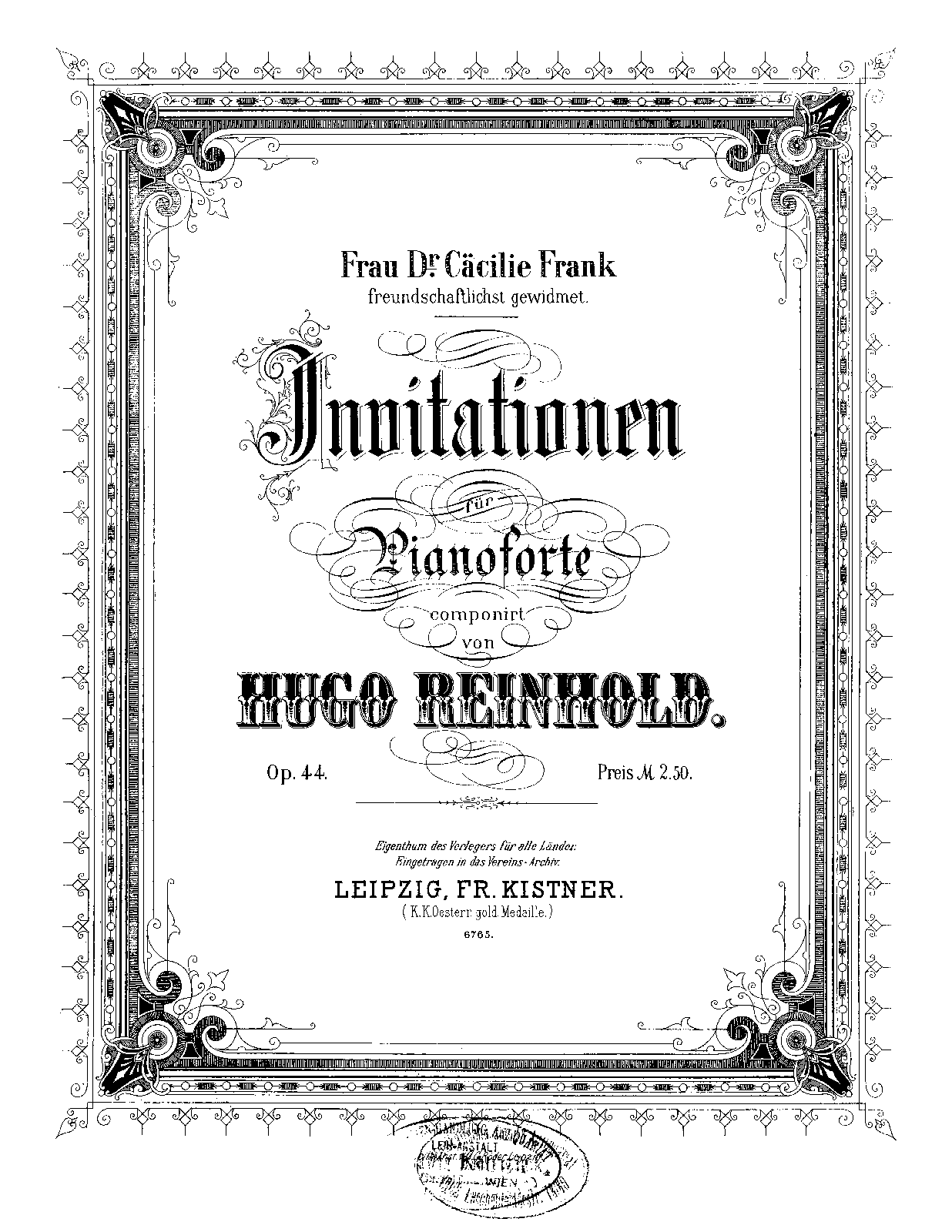 Publisher. Info. Leipzig: Kistner, n.d.[1886]. Plate 6765.